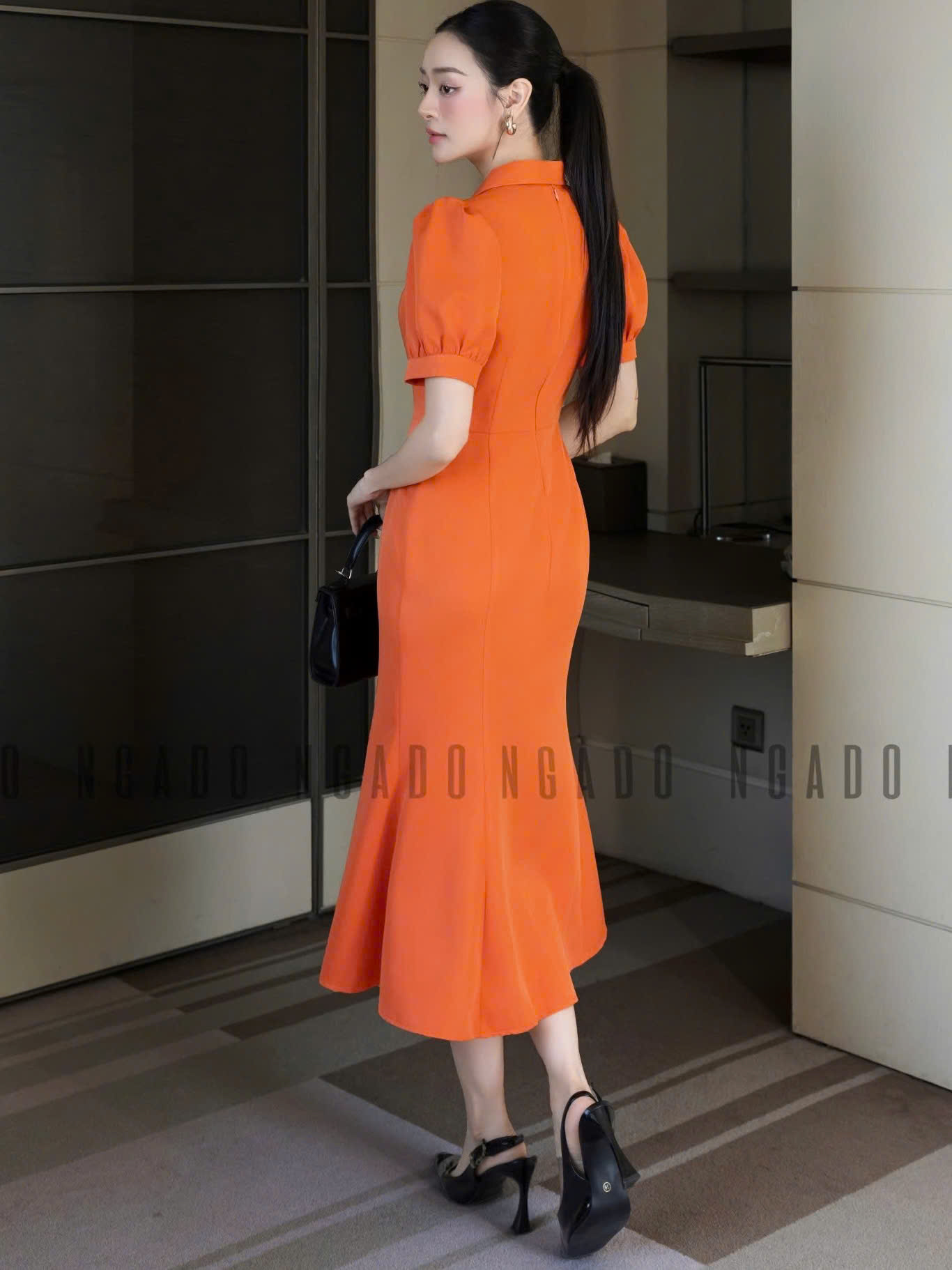 ✨Đầm cam xẻ vạt NGADO , đầm dáng dài , đầm dự tiệc , công sở