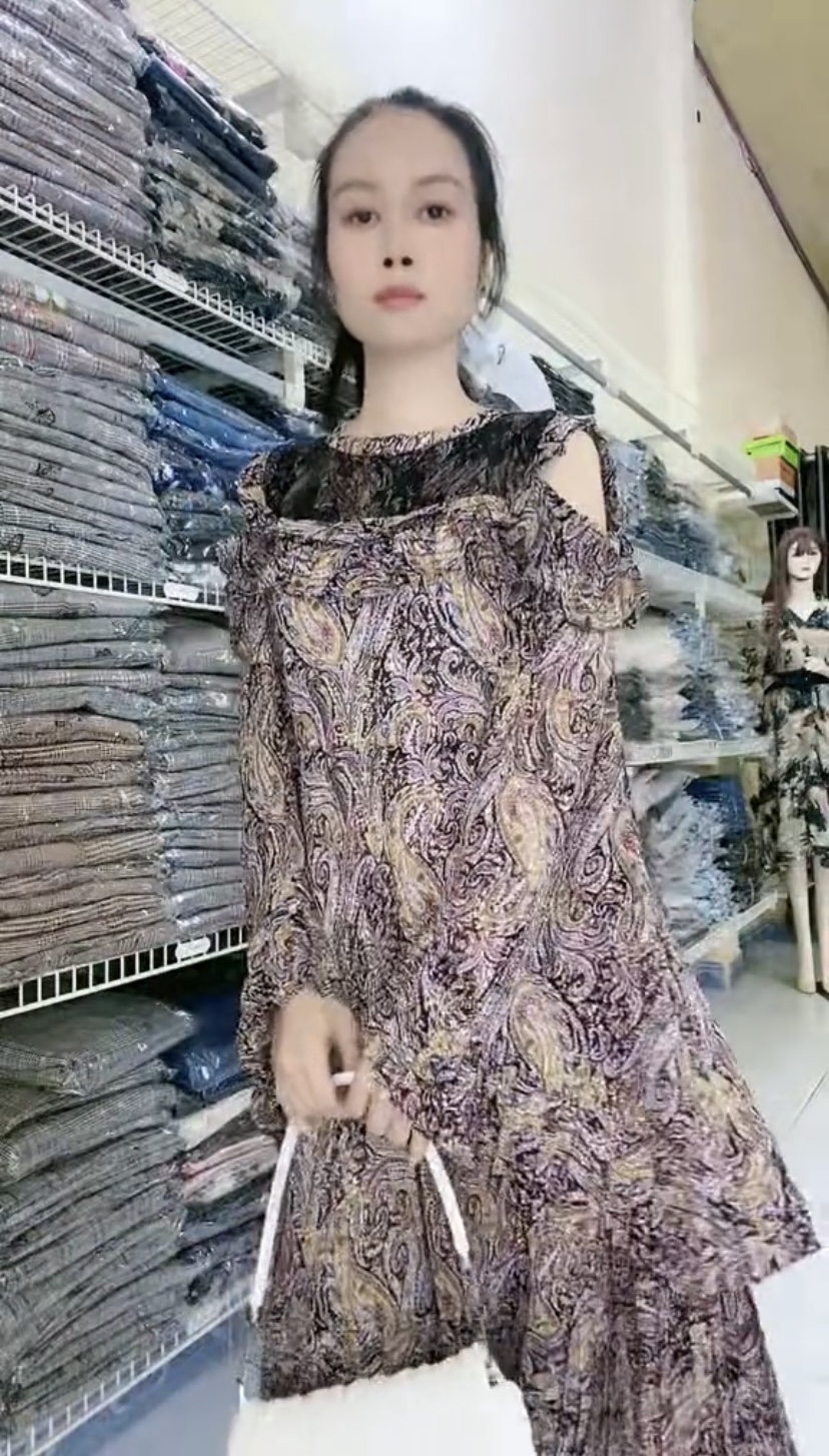 ✨Đầm hở vai xếp ly tay cánh quạt quý phái mát mẻ vừa nữ tính vừa giúp thon gọn bắp tay.