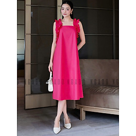 ✨Đầm hồng sen nhún vai NGADO , đầm suông , đầm dài