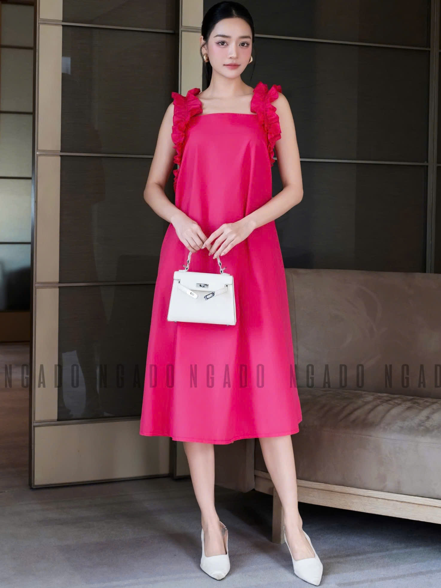 ĐẦM SUÔNG SÁT NÁCH NHÚN TẦNG - VÁY ĐẦM CAO CẤP CARDINA - VẢI CHÉO Ý MỀM MỊN MÁT - TRẺ TRUNG