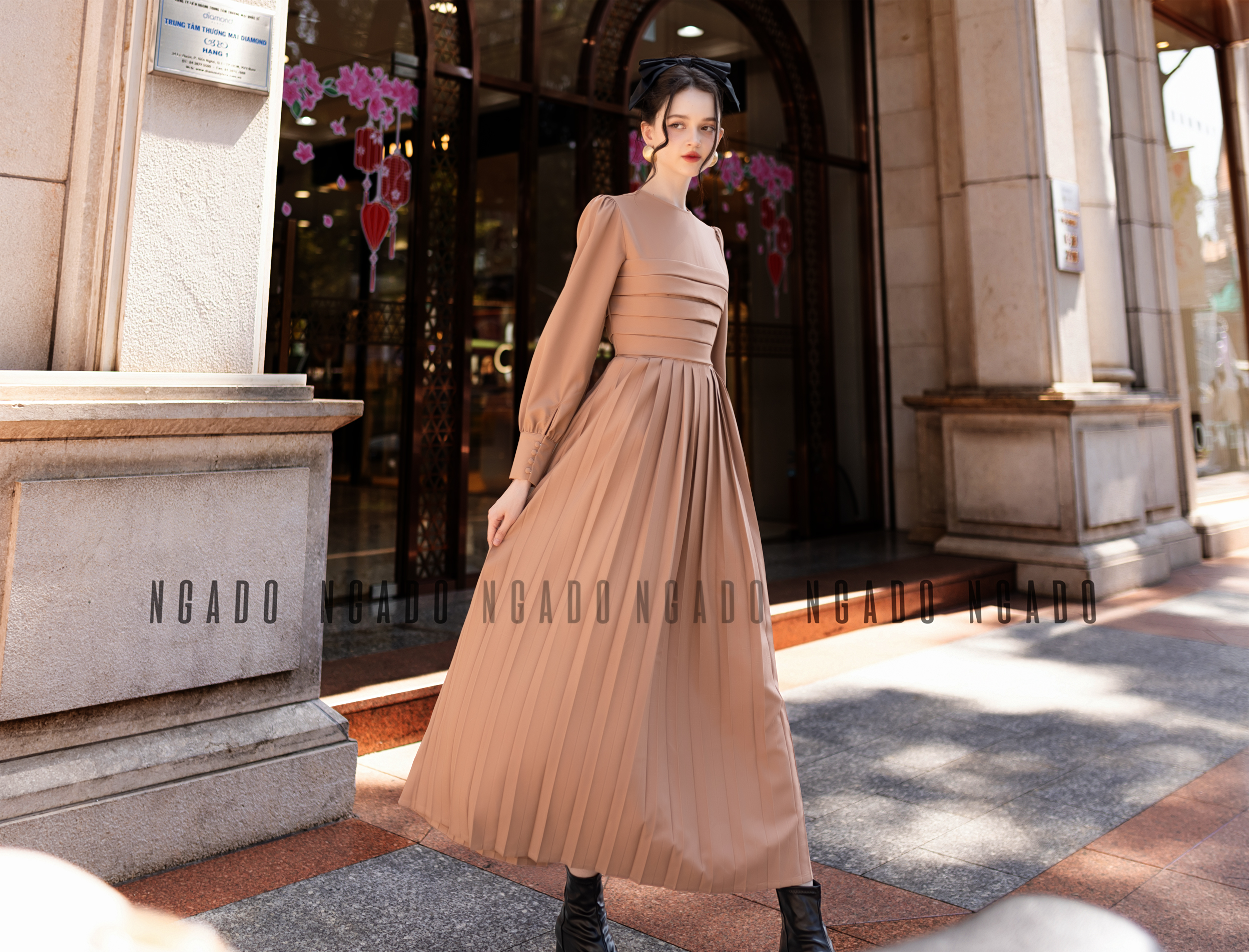 Chân váy xếp ly dáng dài màu nâu thanh lịch, trẻ trung - BT8X063