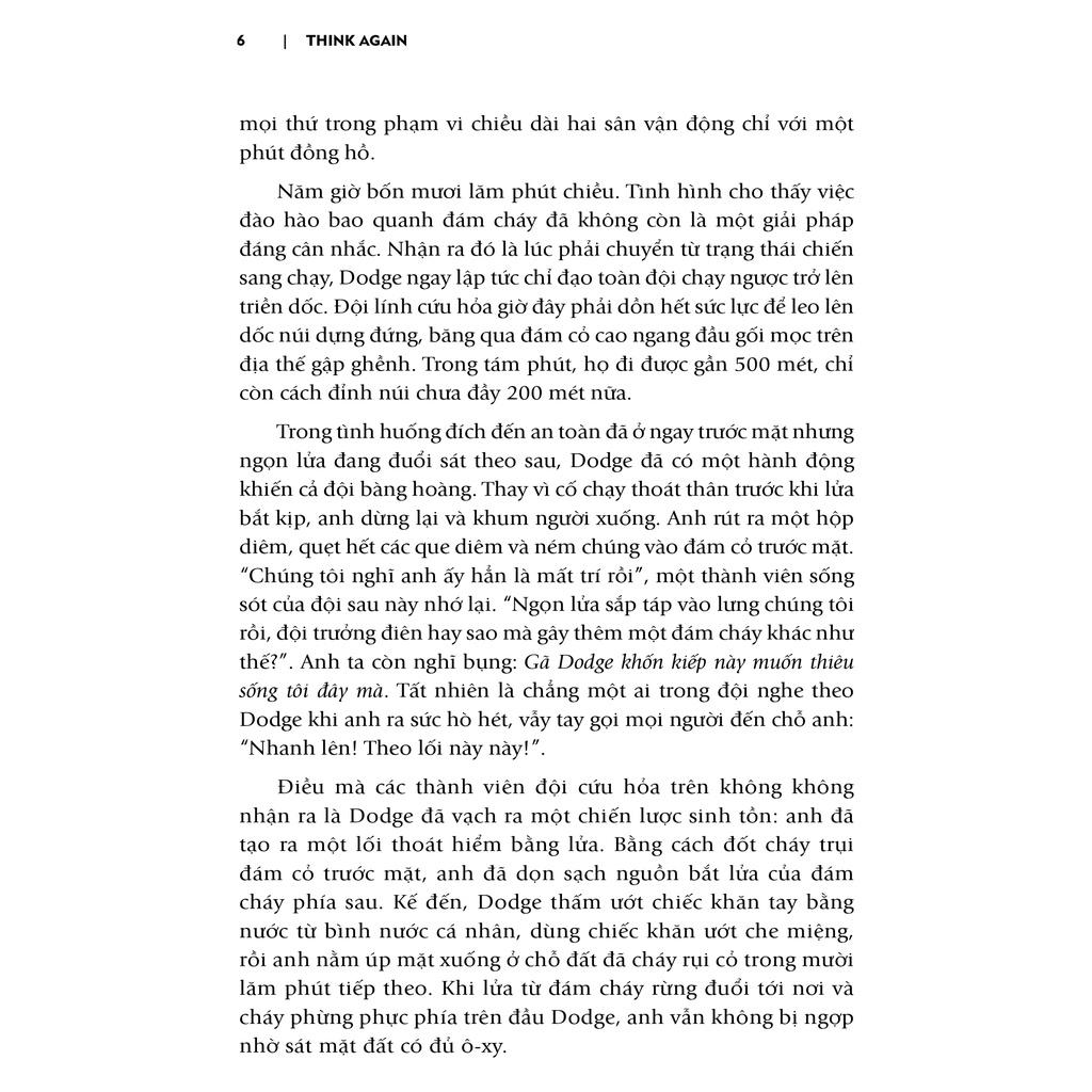 “Quyển sách phải đọc dành cho bất kỳ ai muốn tạo ra văn hóa học tập và khai phá, dù trong gia đình, ở nơi làm việc hay trong lớp học. Bằng sự nồng nhiệt và hài hước, Adam Grant chắt lọc những nghiên cứu công phu thành một lập luận đầy thuyết phục cho thấy tại sao ai cũng cần không ngừng chất vấn những giả định cũ và sáng tạo nên những ý tưởng và góc nhìn mới mẻ. Cuốn sách này chứa đựng những bài học quan trọng trong một thế giới ngày càng phân cực.”