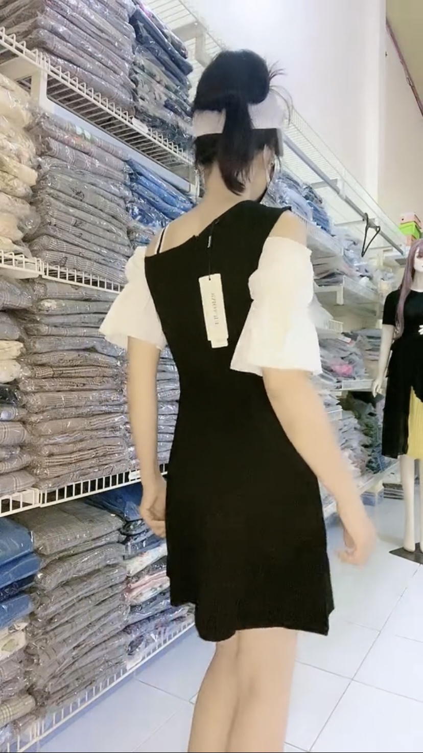 Mua tại TiktokĐầm chất lượng cao ôm body hở vai tôn eo tôn dáng Mã: DLAG008 Màu: Đen + Trắng Chất liệu: Polyester, spandex