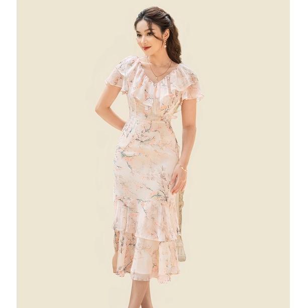 Đầm được thiết kế trên chất liệu Chiffon họa tiết cao cấp