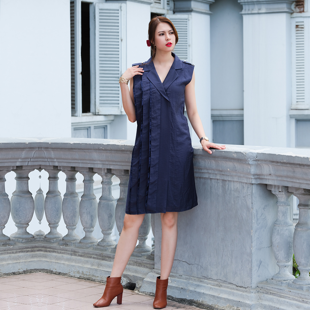 - cắt may thủ công tinh tế tại Nha Trang, Việt Nam Lụa trên tấm thân em như lời thơ Lụa ôm lấy thân em tựa giấc mơ Lụa trên tấm thân em như lời thơ Để cho anh vội ngắm lời thơ Để cho anh lời ca tình yêu viết tặng em. (Mượn lời Dáng em lụa là của nhạc sĩ Lương Bằng Quang) Âm nhạc và tâm hồn người nghệ sĩ nhìn cái gì cũng đẹp một cách thật chân thực. Chỉ vài lời nhạc sĩ viết ra đọng lại bao nhiêu nét đẹp của người phụ nữ trong những trang phục lụa là. Một thiết kế chinh phục cả những người phụ nữ yêu thời trang kỹ tính và tinh tế nhất. Sắc màu Xanh Navy kinh điển được Hity khéo léo chọn và phối giữa hai nền vải lụa poly và satin tạo nên một chiếc đầm suông thanh lịch cho những ai yêu thích nét tinh tế và sang trọng của các thiết kế thời trang. Hướng dẫn giặt ủi: