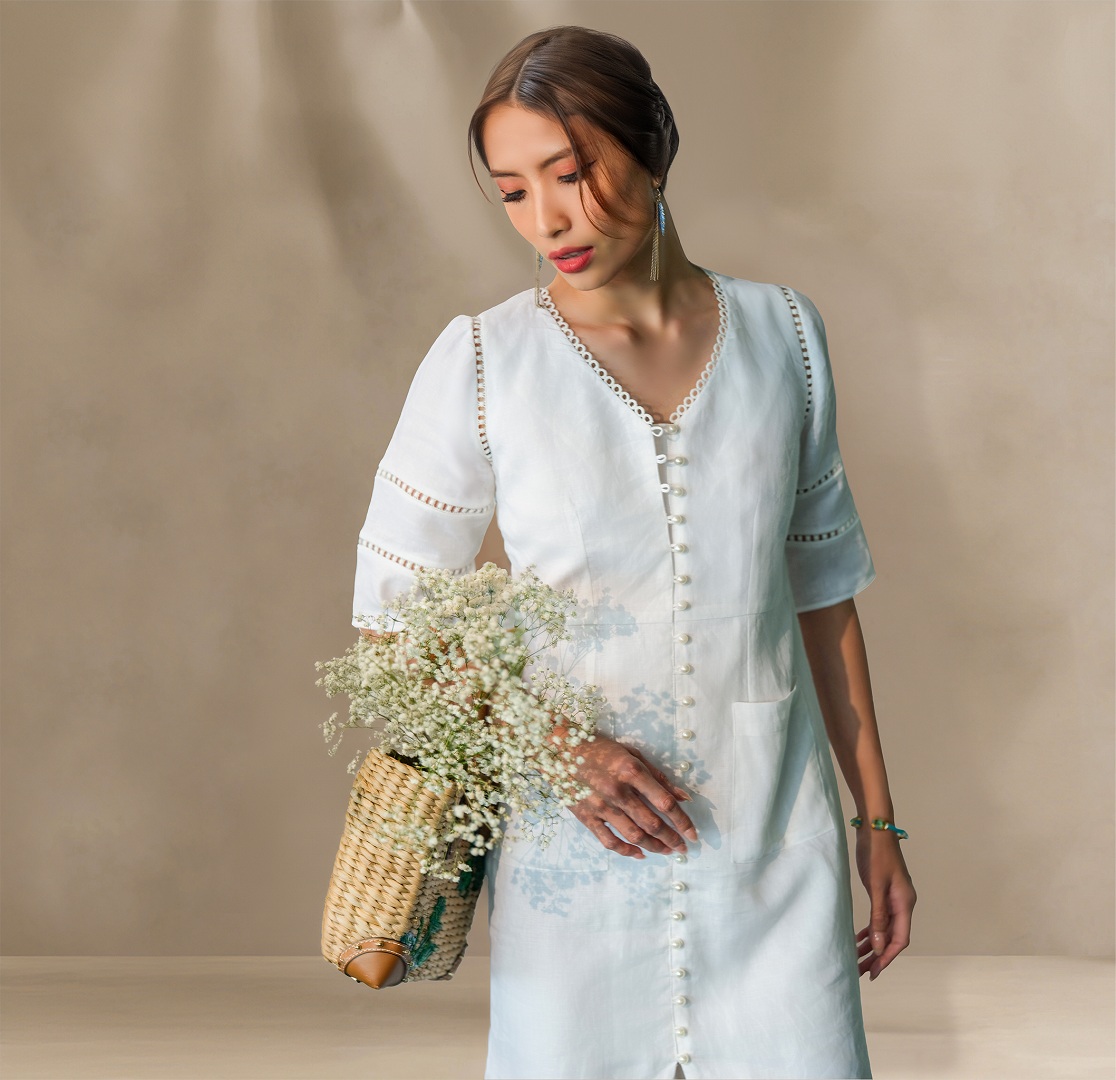 Với thiết kế suông cổ điển, tôn lên vóc dáng người phụ nữ một cách tinh tế, che đi những khuyết điểm một cách khéo léo. Đường may tỉ mỉ cùng những chi tiết ren cotton tinh xảo tạo điểm nhấn cho chiếc đầm, mang đến vẻ đẹp sang trọng và quý phái.