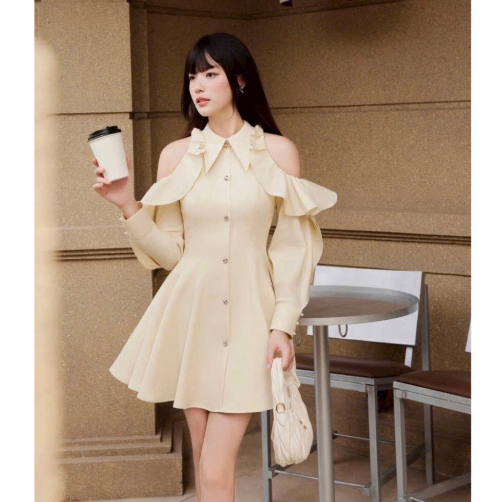 Váy sát nách cổ sen tầng bèo xinh xỉuuuuu váy có kèm quần bảo hộ nên ce vẫn thoải mái nha 2 màu: đen - kem •S/M Sản phẩm này là tài sản cá nhân