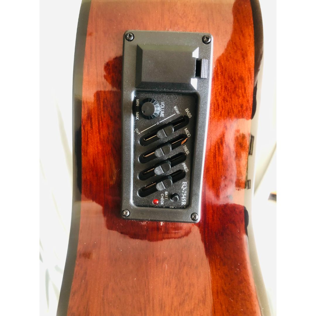 Đàn guitar classic DC120JX có EQ thùng full size có khuyết gỗ Hồng đào nguyên tấm Duy Guitar Store THÔNG TIN CHI TIẾT: Đàn guitar classic DC120JX là dòng có eq, model eq là 7545R