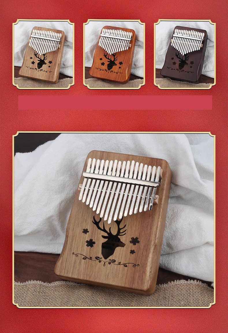 ✨Đàn Kalimba Gỗ 17 Phím I Khắc Hình Tuần Lộc I Nhạc Cụ Gỗ Du Dương Cho Người Mới Bắt Đầu