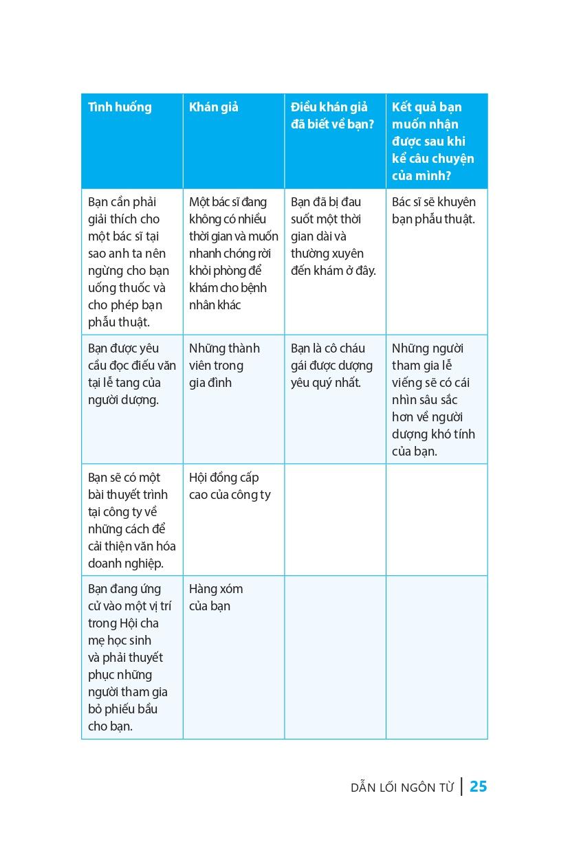 Nghệ thuật kể chuyện không chỉ để khuấy động không khí cho đám đông mà còn là công cụ hữu ích cho cuộc sống. Ví dụ khi bạn đang tham dự một cuộc họp kinh doanh, một câu chuyện sẽ giúp bạn nhấn mạnh quan điểm của mình hơn rất nhiều; một câu chuyện cũng rất cần thiết để kêu gọi tình nguyện viên cho một tổ chức. Cho dù bạn đang kể chuyện cho bạn bè, sếp, khách hàng hay thậm chí một người xa lạ, quyển sách “Dẫn lối ngôn từ” cũng sẽ giúp ích cho bạn. Bạn sẽ nhận ra rằng: Đúng, bạn có thể kể chuyện.