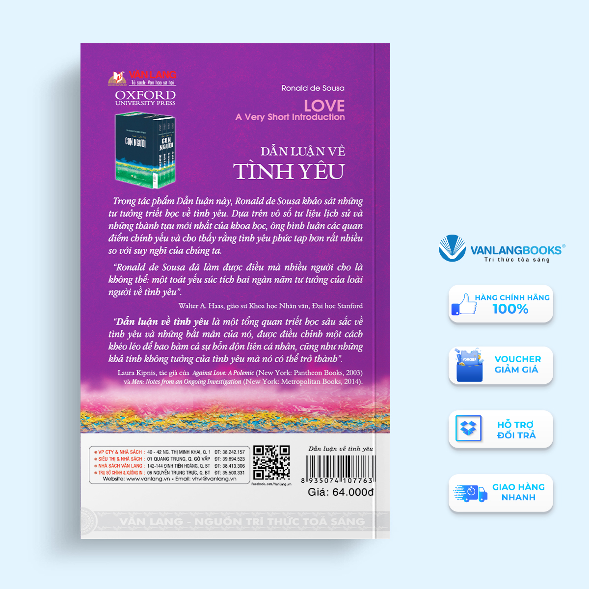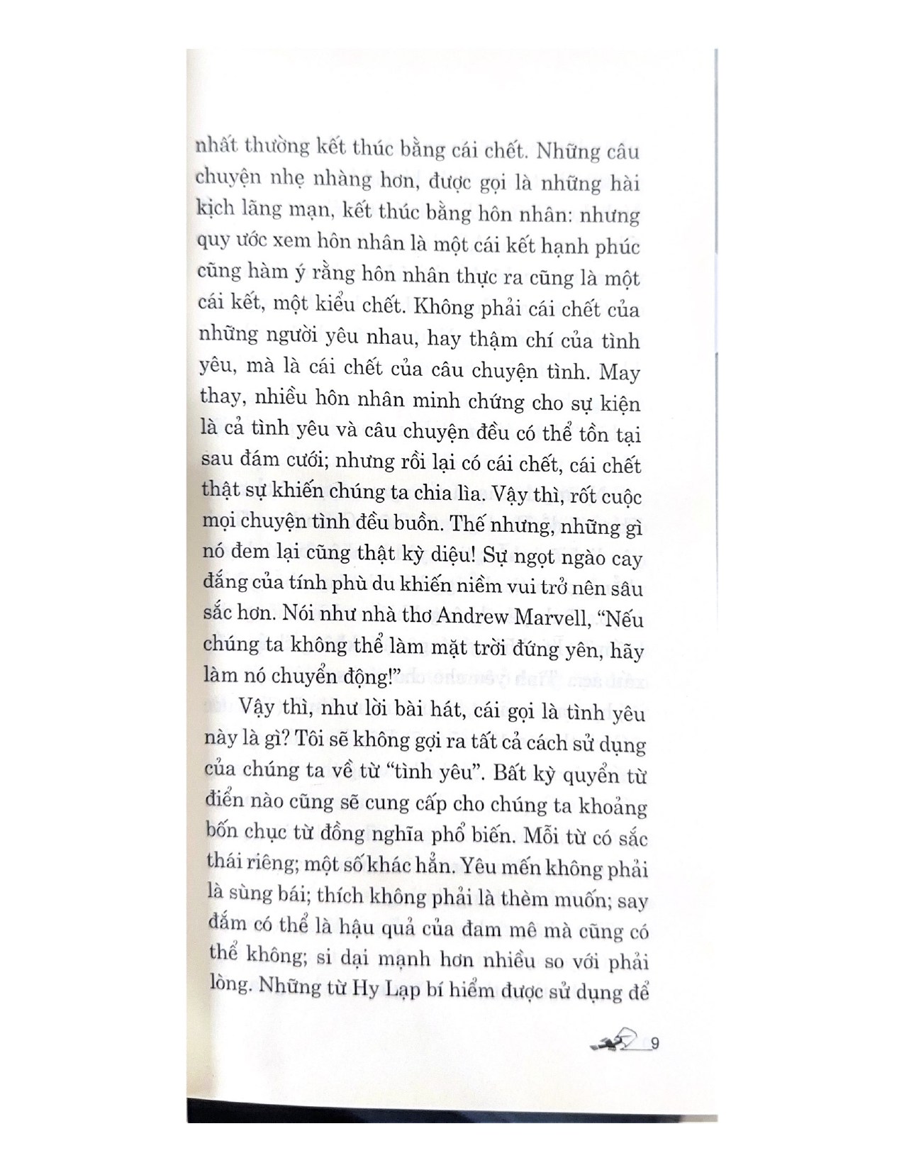 Trong sách Dẫn luận này, Ronald de Sousa khảo sát những tư tưởng triết học về tình yêu. Dựa trên vô số tư liệu lịch sử và những thành tựu mới nhất của khoa học, ông bình luận các quan điểm chính yếu và cho thấy rằng tình yêu phức tạp hơn rất nhiều so với suy nghĩ của chúng ta.