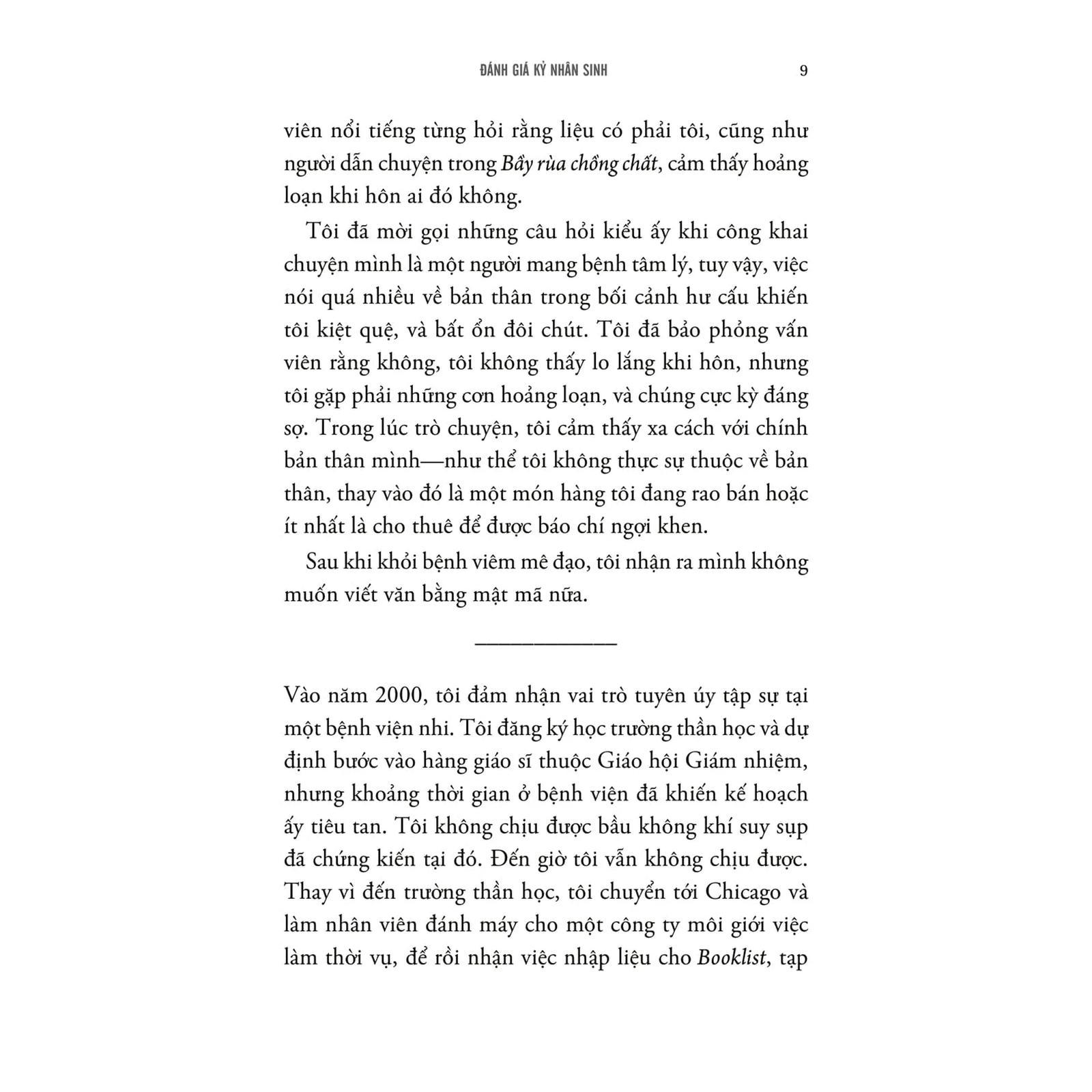 Các bài viết trong "Đánh giá kỷ nhân sinh" một lần nữa cho thấy tài kể chuyện hiếm có của John Green. Tác phẩm là cuộc hành trình khám phá đầy cảm hứng về những con đường mà chúng ta đã khai mở, đồng thời là một lời tụng ca chân thành về tình yêu dành cho thế giới.