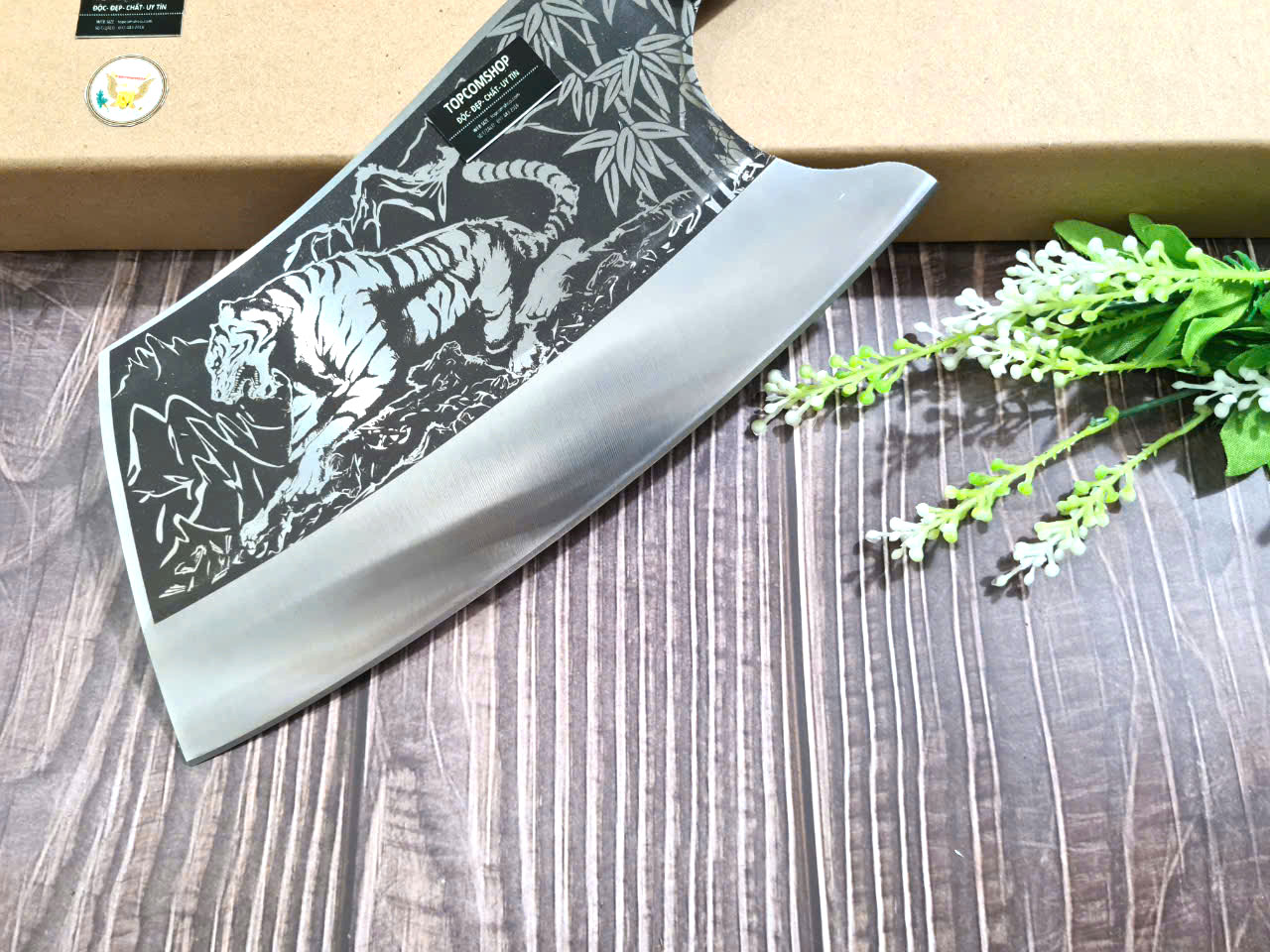 - Chức năng: chuyên chặt thái cá, chặt gà, lọ - Kích thước: Lưỡi: 26cm, cán: 12,5cm, rộng: 6,5cm, dầy: 4ly, trọng lượng: 480g - Chất liệu lưỡi dao: Thép Nhíp xe ô tô Nga