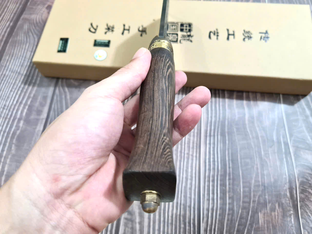 - Chức năng: chuyên chặt thái cá, chặt gà, lọ - Kích thước: Lưỡi: 26cm, cán: 12,5cm, rộng: 6,5cm, dầy: 4ly, trọng lượng: 480g - Cán : Gỗ mun , Khâu và chốt đồng đỏ