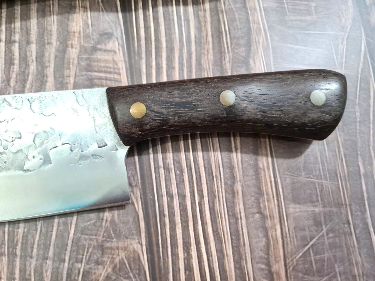 - Chức năng: thái thịt, rau củ quả - Kích thước: Lưỡi: 17cm, cán: 12cm, rộng: 5cm, dầy: 1ly, trọng lượng: 200g - Cán : Gỗ cẩm chỉ, Chốt, Khâu ĐỒNG THAU , keo liên