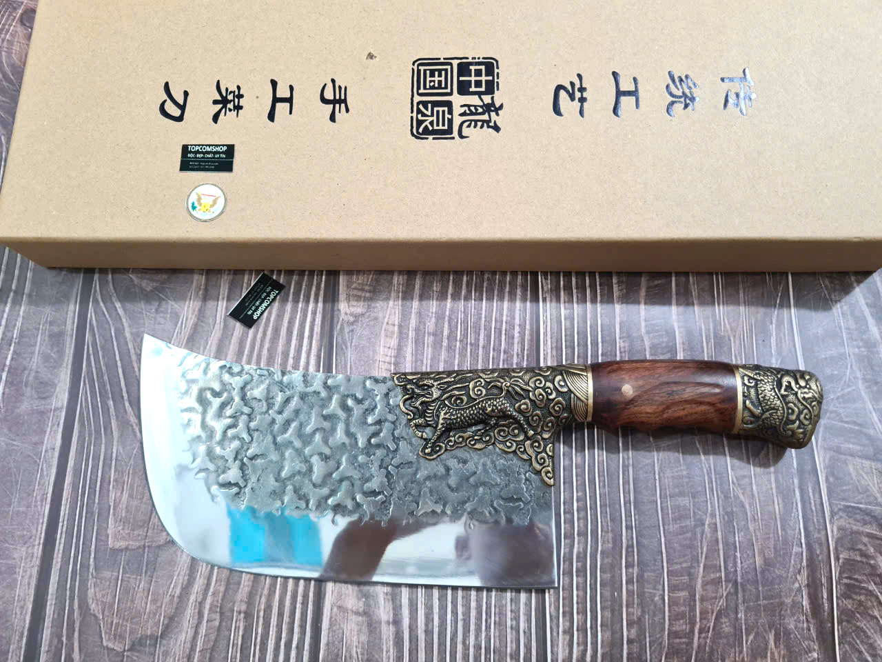 - Chức năng: thái thịt, rau củ quả - Kích thước: Lưỡi: 17cm, cán: 12cm, rộng: 5cm, dầy: 1ly, trọng lượng: 200g - Cán : Gỗ cẩm chỉ, Chốt, Khâu ĐỒNG THAU , keo liên