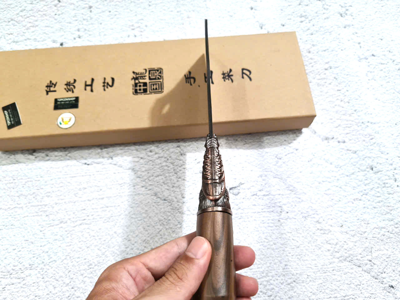 THÔNG TIN SẢN PHẨM ều dài TỔNG: 31cm Chiều dài lưỡi: 18.5cm Chiều rộng lưỡi: 8cm, Độ dày lưỡi: 2.7mm Trọng lượng: 0,35kg chất liệu lưỡi : 4Cr13MOV (thép 4 crom 13 molypden vanadi)