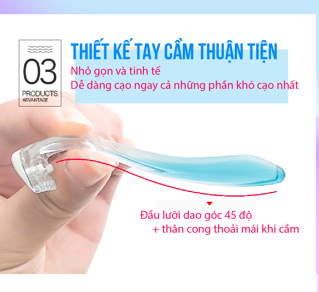 Mua tại TiktokTHÀNH PHẦN THÀNH PHẦN CẤU TẠO: Lưỡi dao: Thép không gỉ. Màng bảo vệ: Màng nhựa đặc biệt. Tay cầm: Nhựa ABS, PP, PS. Nắp: Nhựa PP. CÔNG DỤNG Sản phẩm dao cạo chuyên