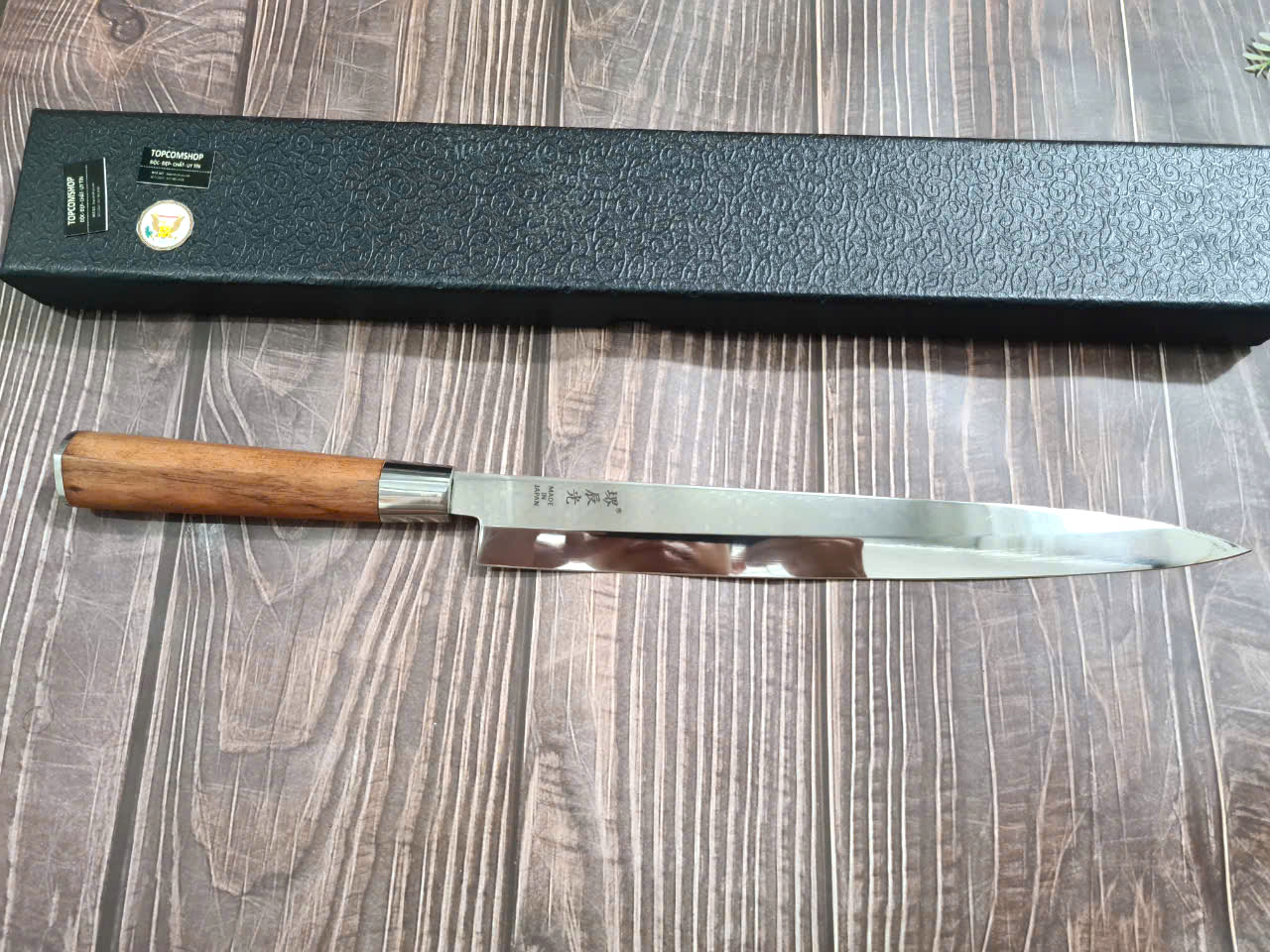 Dao Phúc Sen bản Takohiki - Kích thước: lưỡi: 24cm, cán: 12cm, rộng: 3.5cm, dầy: 2.5 ly, trọng lượng: 200g - Chức năng: sử dụng chuyên thái thịt ,cá, rau củ và các thực phẩm