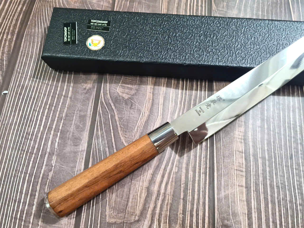 DAO BẾP SASHIMI là chiếc dao Nhật cao cấp chuyên dùng để cắt thái thịt cá và các loại thực phẩm nhỏ. Lưỡi dao thuôn dài, được làm từ chất liệu cao cấp giúp dao luôn bền đẹp như lúc đầu.