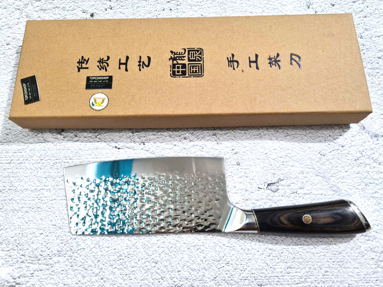 - Cán được làm bằng gỗ Pakka có vẻ ngoài thanh lịch, Lưỡi Được làm từ chất liệu thép 7Cr17 cao cấp giúp D có độ sắc rất lâu, rất ýt khi phải mài.