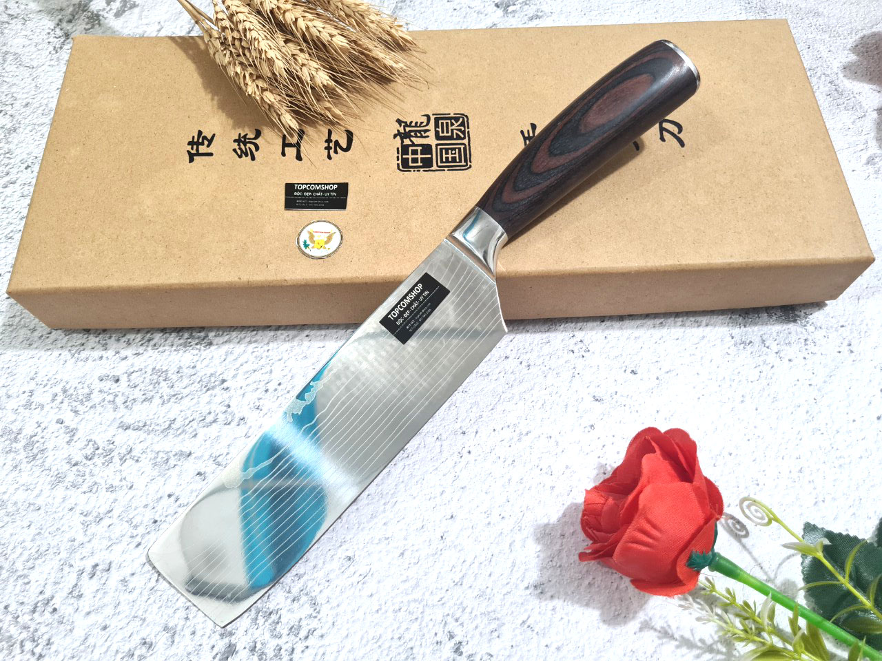 Tên sản phẩm: Dao Phúc Sen, Dao Thái Kiểu 03 Cán Gỗ Cẩm - Chức năng: chuyên thái thịt, rau củ - Chất liệu: 100% thép nhíp ô tô được lựa chọn và kiểm duyệt