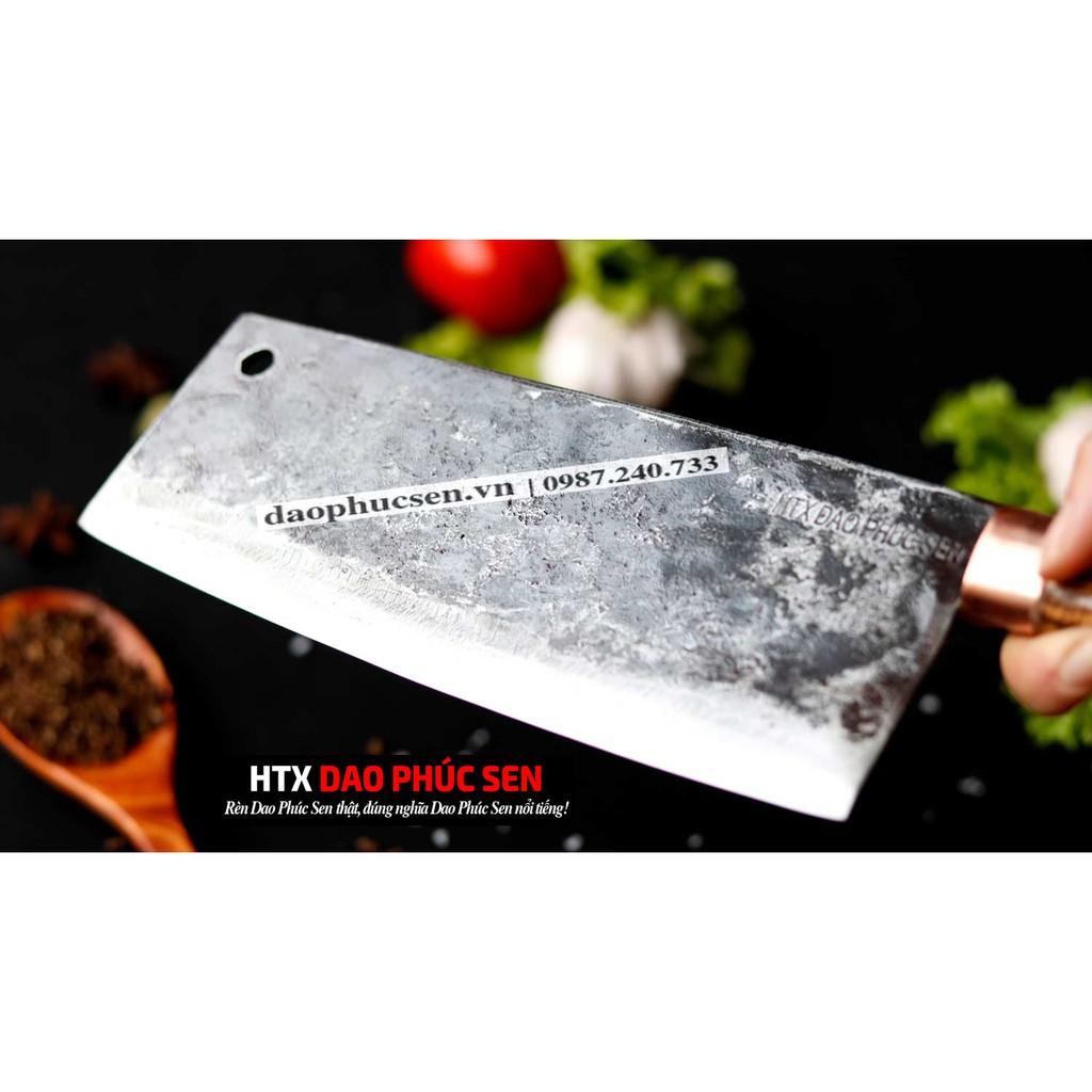 Dao Phúc Sen Chặt Xương Cán Cẩm Khâu Đồng - Kích thước: lưỡi: 24cm, cán: 13cm, rộng: 10cm, dầy: 0,5, trọng lượng: 700g - 900g - Chức năng: sử dụng chuyên chặt xương ống, xưởng