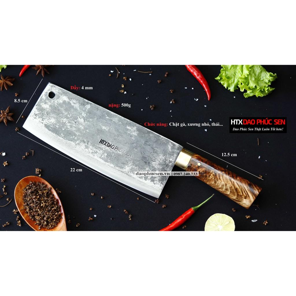 Dao Phúc Sen - Dao chặt xương 5ly - Chất liệu: 100% thép nhíp ô tô được lựa chọn và kiểm duyệt kỹ càng. - Chất liệu cán: gỗ cẩm chỉ núi - Kích thước:
