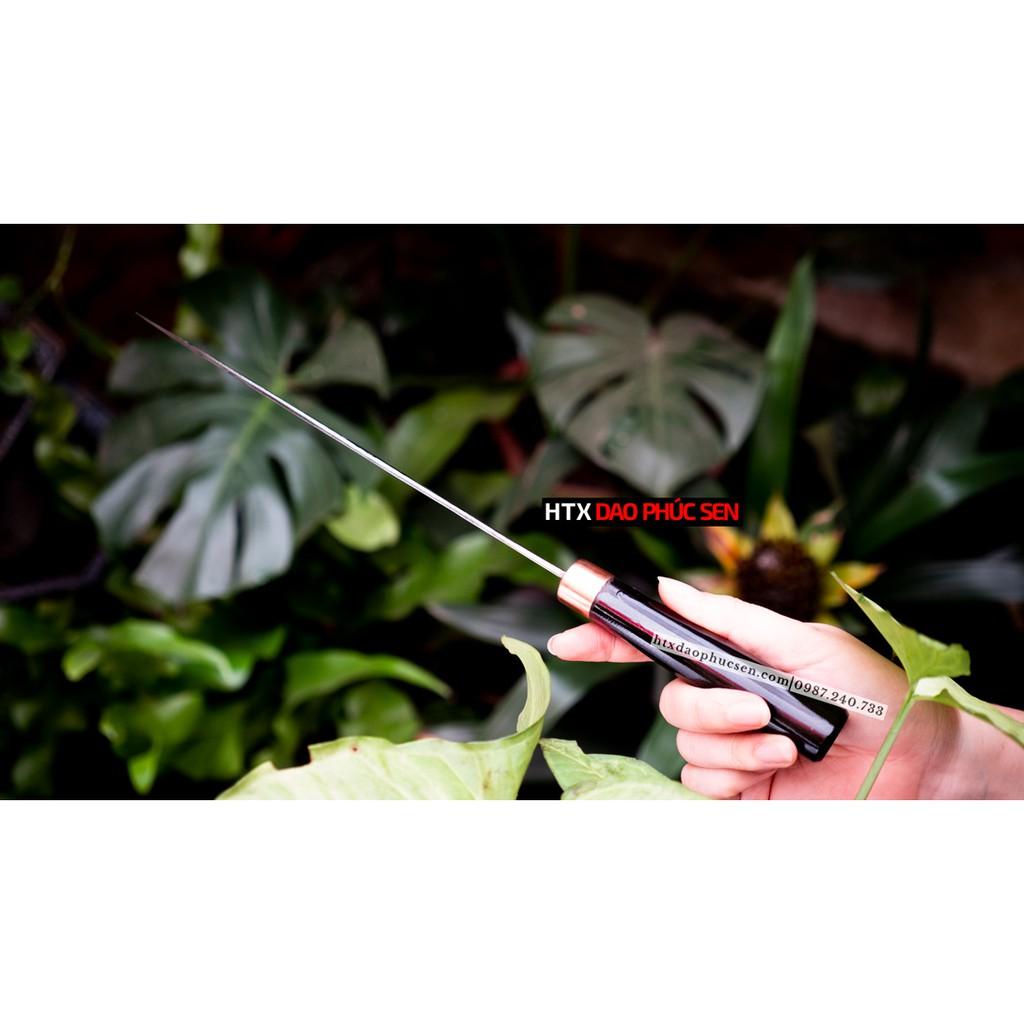 Dao Phúc Sen bản Takohiki - Kích thước: lưỡi: 24cm, cán: 12cm, rộng: 3.5cm, dầy: 2.5 ly, trọng lượng: 200g - Chức năng: sử dụng chuyên thái thịt ,cá, rau củ và các thực phẩm