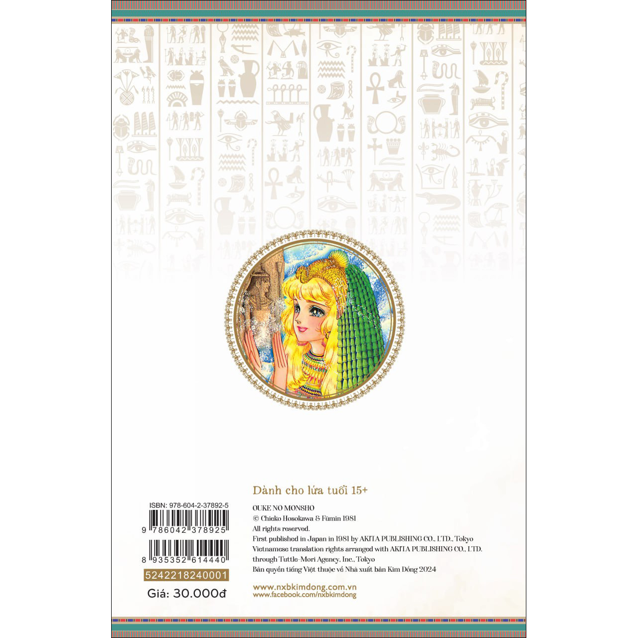 Giới thiệu sách "Tương truyền, khi chòm sao Sopdet xuất hiện ở Ai Cập ta, một thiếu nữ hoàng kim tỏa hào quang rực rỡ sẽ hiện thân bên bờ sông Nile... Nàng là con gái nữ thần sông Nile Hapi. Với dung mạo kiều diễm tựa dòng chảy sông Nile, cùng nụ cười mê hoặc lòng người, thiếu nữ do mẹ hiền sông Nile hạ sinh sẽ ban phước lành cho mảnh đất sa mạc của chúng ta..." Bị vướng phải lời nguyền hoàng gia, thiếu nữ đam mê khảo cổ học Carol đã bị đưa về thế giới 3000 năm trước. Tại đây, cô gái tóc vàng xinh đẹp được vị Pharaoh trẻ tuổi trị vì Ai Cập cổ đại Memphis đem lòng yêu và nhất quyết muốn lập làm hoàng hậu. Tuy nhiên, bủa vây xung quanh họ là những âm mưu và toan tính...  "Huyền thoại" dòng truyện tranh thiếu nữ, câu chuyện lãng mạn kì ảo vượt thời - không nơi vùng đất Ai Cập cổ đại huyền bí đầy mê hoặc sẽ chính thức bắt đầu từ tháng 8.2024. Hãy cùng đón chào màn ra mắt chính thức với BẢN QUYỀN 100% của tác phẩm kinh điển gắn liền với hồi ức của nhiều thế hệ độc giả.