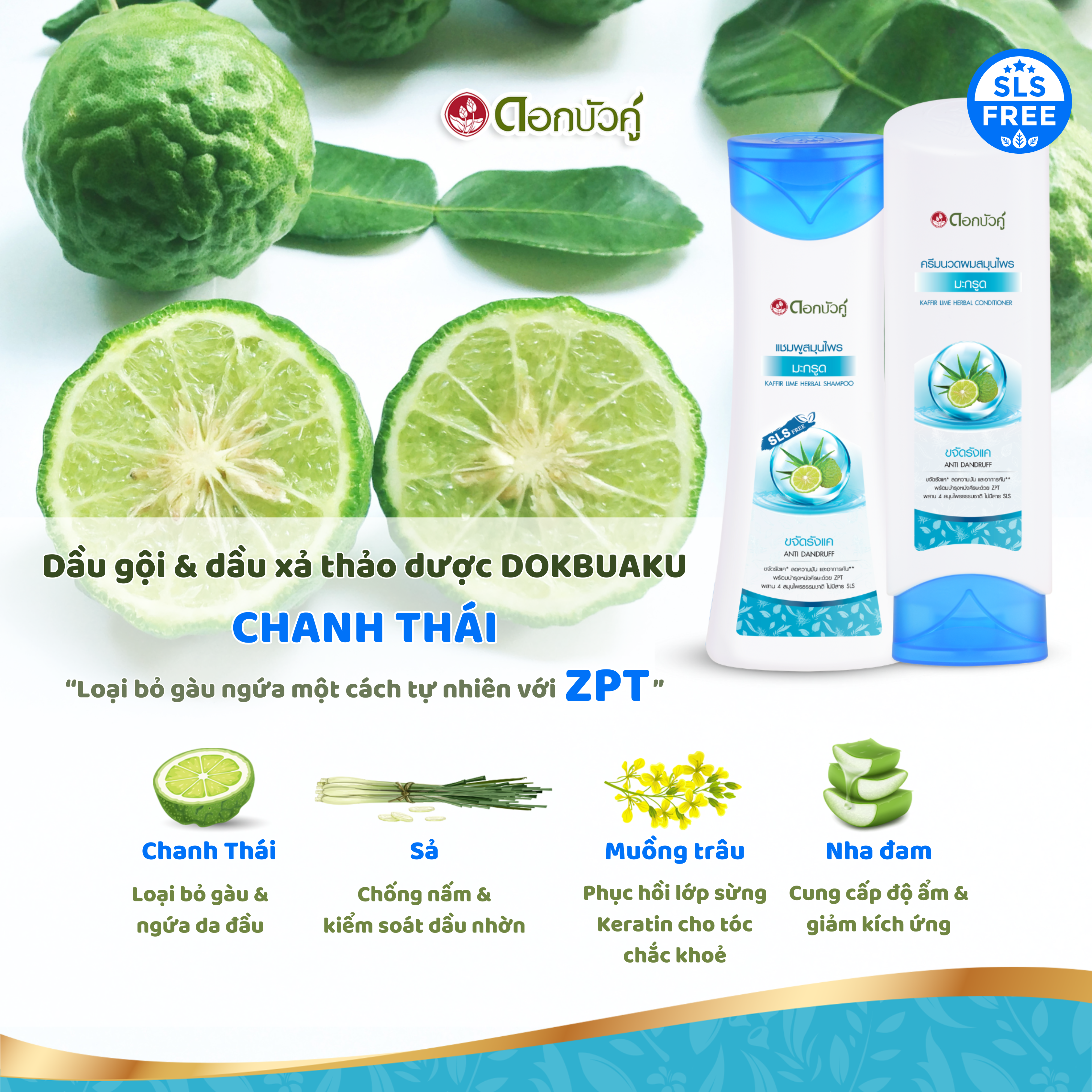 DẦU GỘI THẢO DƯỢC DOKBUAKU KAFFIR LIME HERBAL (CHANH THÁI) – LOẠI BỎ GÀU HIỆU QUẢ