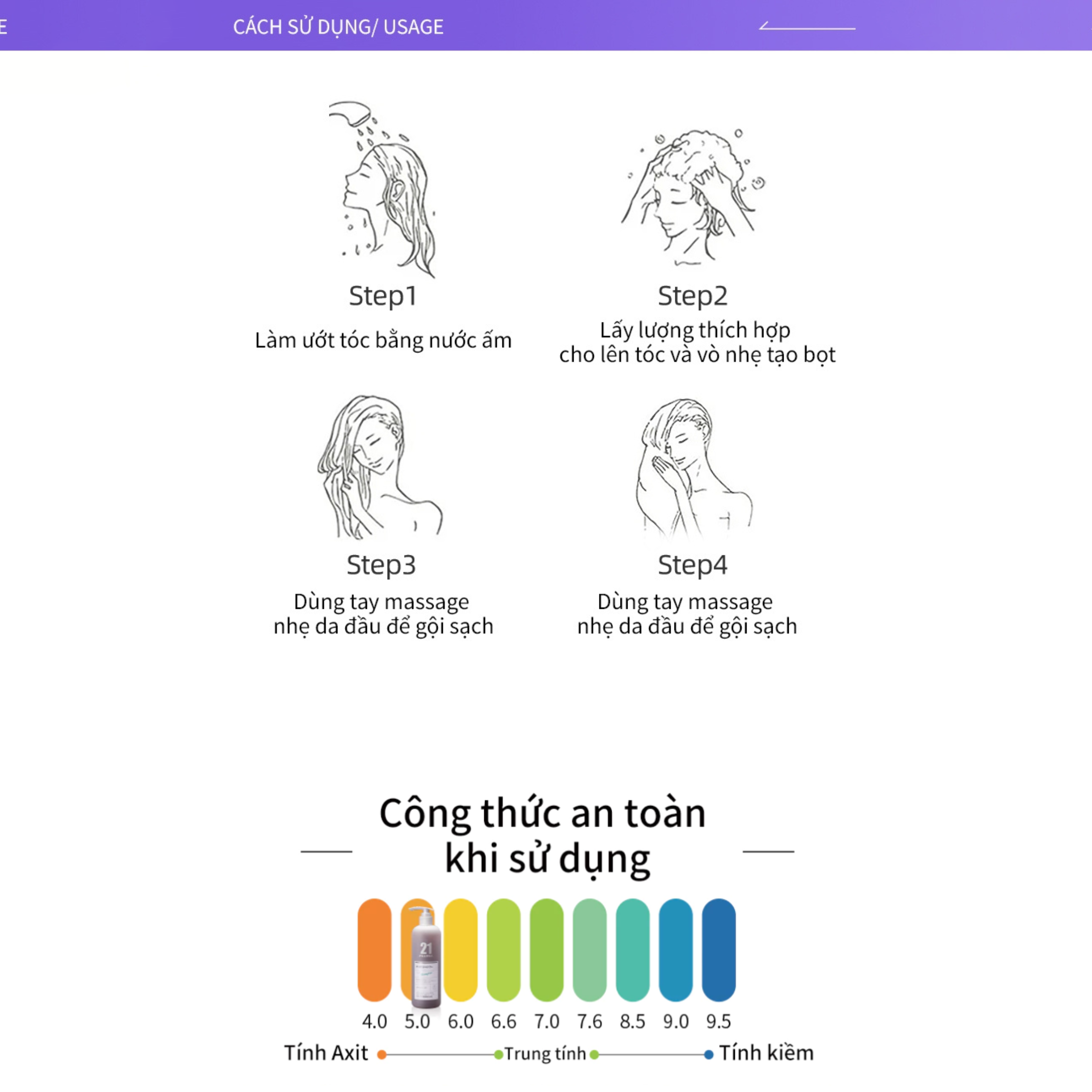 - Thành phần tự nhiên: Không chứa silicon, không chứa xà phòng, dịu nhẹ và an toàn cho mọi loại da đầu.