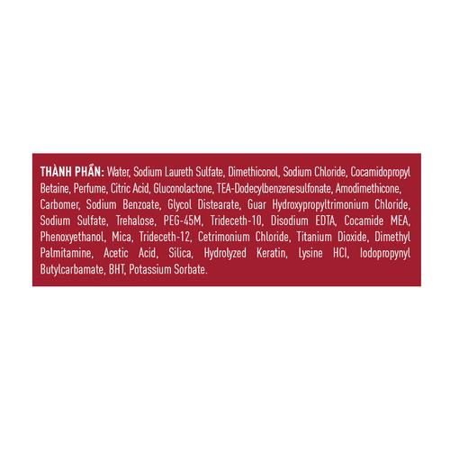Thành phần: Water (Aqua), Sodium Laureth Sulfate, Cocamidopropyl Bentaine, Glycol Distearate, PEG-2 Laurate, Công dụng Dầu gội giàu dưỡng chất và độ ẩm nuôi dưỡng tóc từ gốc đến ngọn đồng thời giữ tóc vào nếp