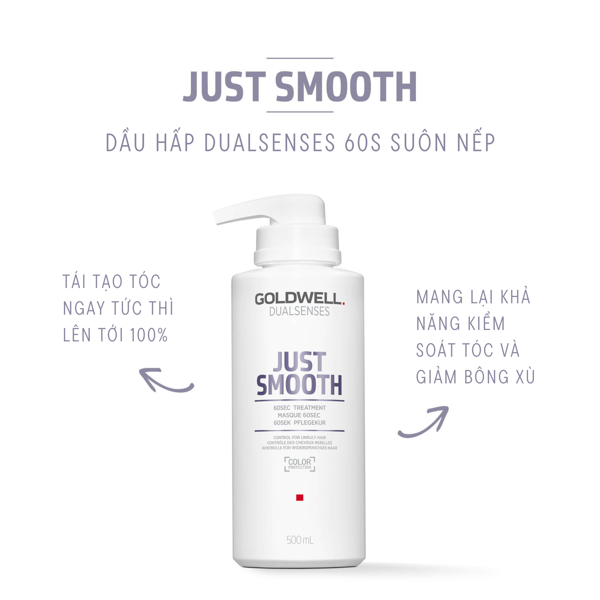 Dầu Hấp 60s Dưỡng Tóc Mềm Mượt Goldwell Just Smooth Giảm Bông Xù, Xơ Rối, Kiểm Soát Tóc Tức Thì - Phù hợp với tình trạng tóc: + Tóc tơ mảnh + Bông xù, xơ,