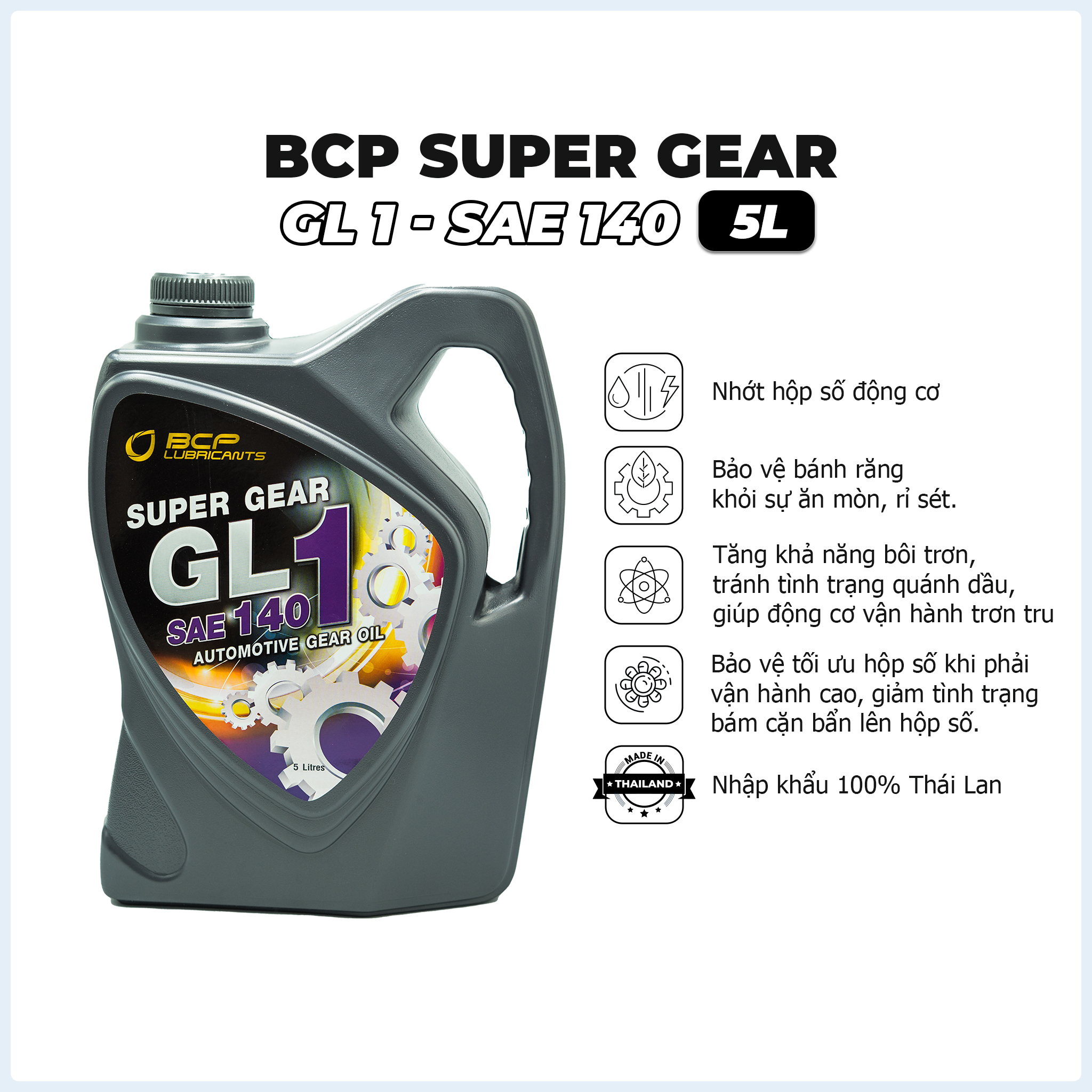 DẦU HỘP SỐ (NHỚT CẦU) Ô TÔ, XE TẢI, MÁY CÀY, XE BA GÁC CAN 5 LÍT - BCP SUPER GEAR SAE 140, SAE 90 (NHẬP KHẨU THÁI LAN 100%)