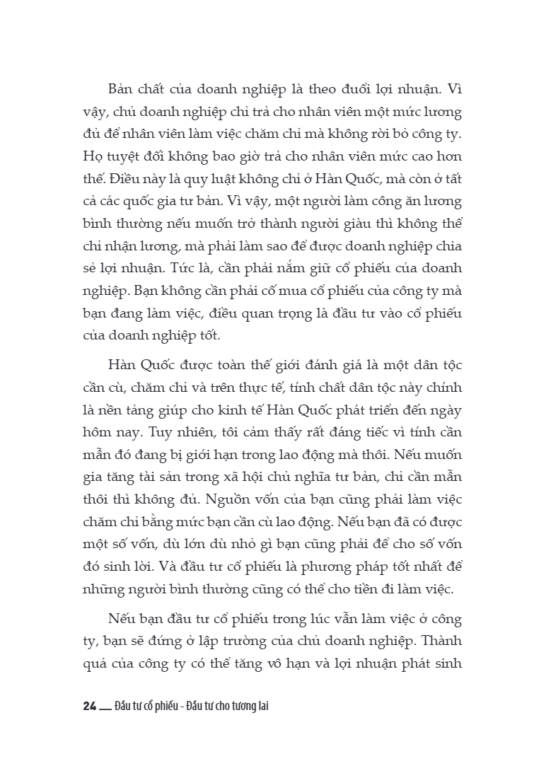 “Đây là cuốn sách dành cho những quý độc giả mong muốn đầu tư cổ phiếu lành mạnh và chuẩn bị cho tuổi già trong dài hạn, đặc biệt, tôi thành tâm mong mỏi cuốn sách này sẽ giúp ích cho những nhà đầu tư cá nhân muốn đầu tư bền bỉ lâu dài dù chỉ với số tiền nhỏ.” – John Lee
