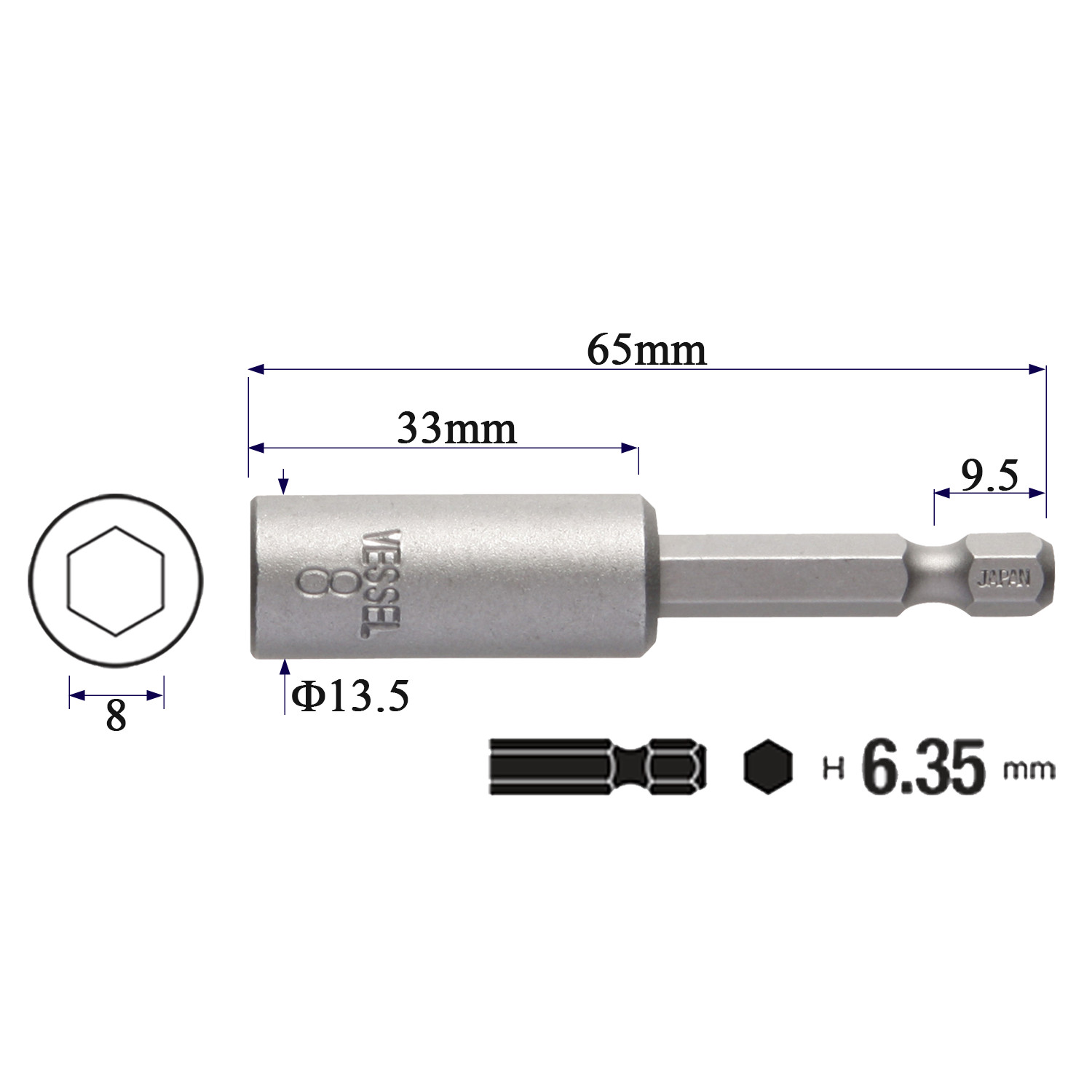✨Đầu vặn ốc lục giác có nam châm M-B45, chuôi lục giác H=6,35mm Vessel (Nhật Bản)