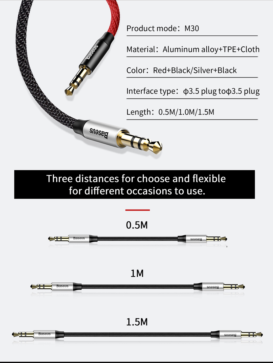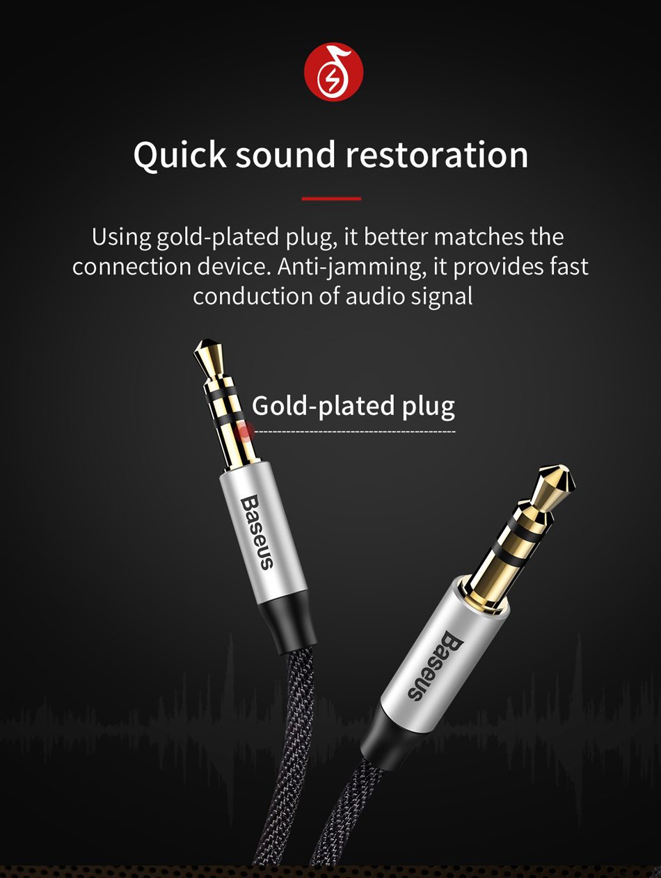 Giới thiệu sản phẩm Dây cáp âm thanh chất lượng cao AUX Audio 3.5 Baseus Yiven Audio Cable M30 (Aux Cable 3.5mm Jack Male to Male) Tính năng sản phẩm Dây cáp âm thanh chất lượng cao AUX Audio 3.5