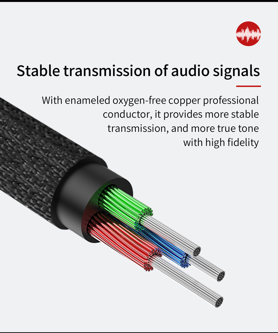 Được trang bị bện đồng và lớp bảo vệ kép, cáp RCA tới tai nghe này có thể truyền tải nhạc giữa các thiết bị Aux và thiết bị 2RCA (Đỏ và Trắng). Cáp giắc cắm