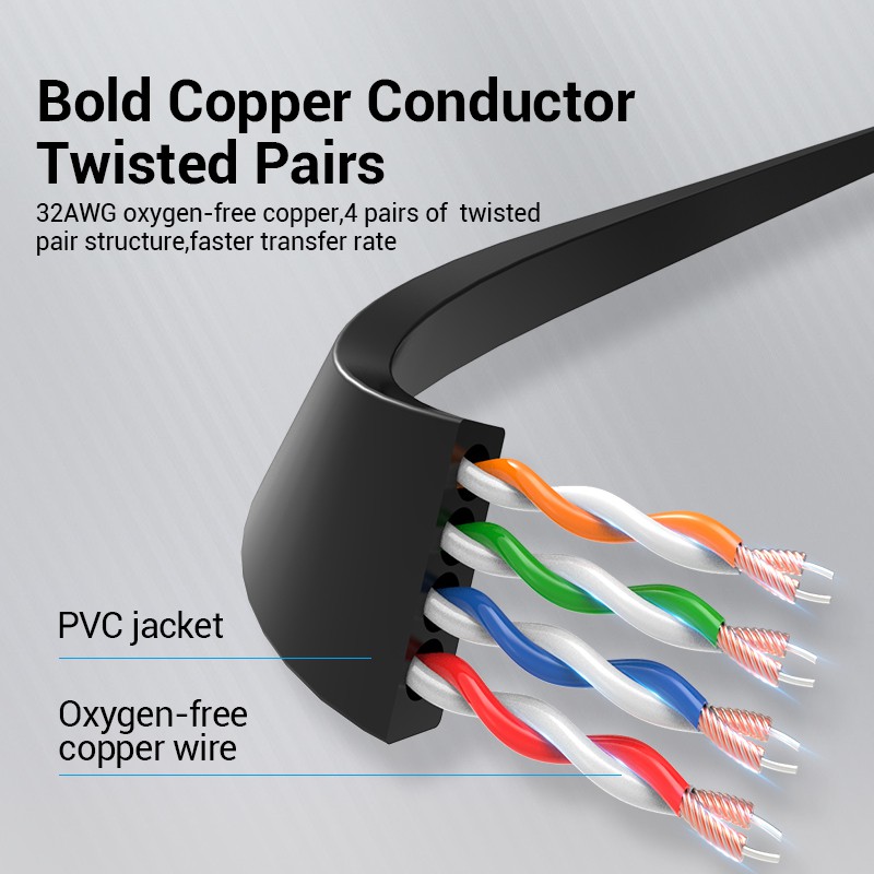 Sợi cáp được làm bằng đồng nguyên chất, kiểu dáng mỏng dẹt thuận tiện cho việc đi dây. Với khả năng truyền dẫn tín hiệu mạng LAN với tốc độ cao, ổn đinh. Thiết kế và