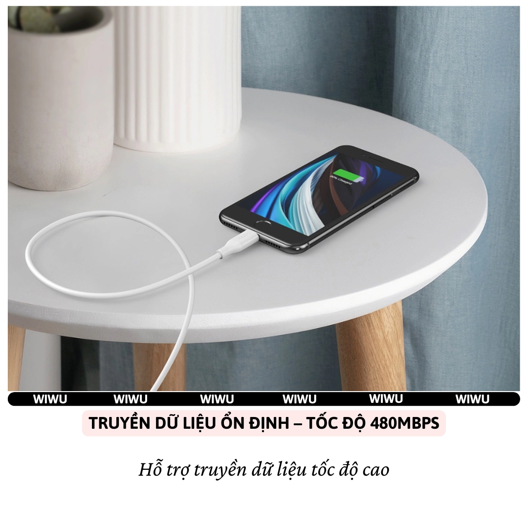 THÔNG TIN CƠ BẢN - Thương hiệu: WiWU - Model: Wi-C043E - Loại cáp: Type-C to L - Chiều dài cáp: 100cm - Chất liệu: Dây bọc silicon - Thiết kế cáp: Cáp bọc silicon có