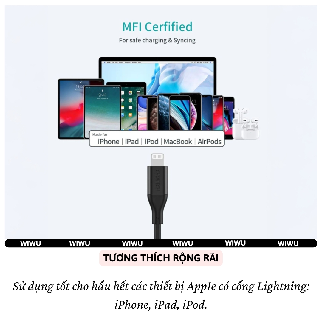 CÁP SẠC NHANH CHOETECH IP0040 – PD 30W, DÀI 2M, CHUẨN MFi – SẠC NHANH, TRUYỀN DỮ LIỆU TỐI ƯU