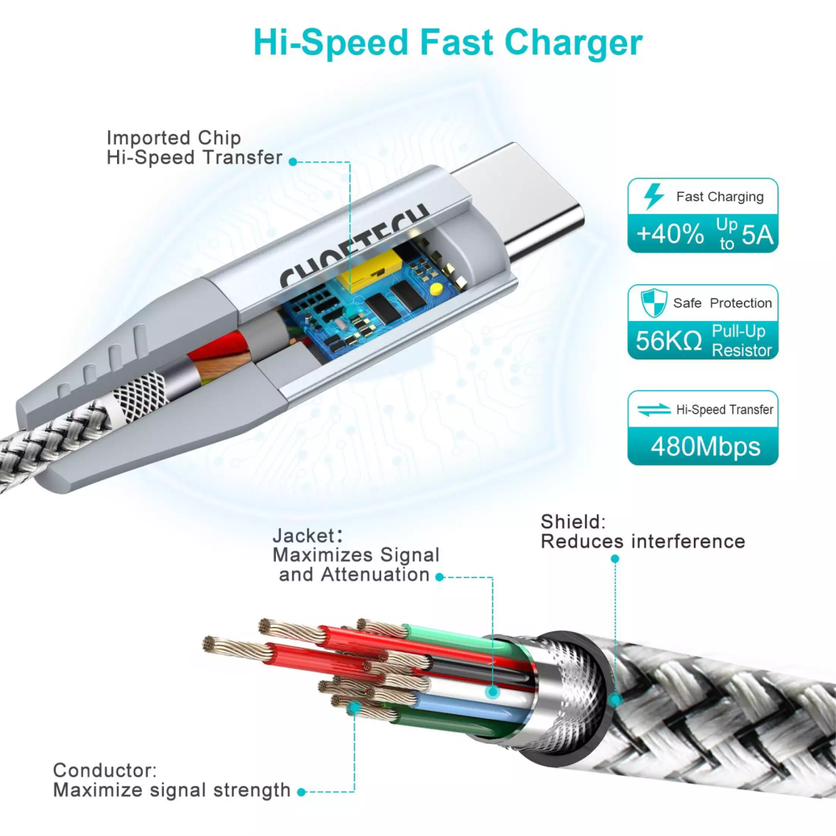 Độ bền tăng cường: Nilon cao cấp bện với vỏ hợp kim nhôm tăng thêm độ bền và không bị rối, cung cấp khả năng bảo vệ chống oxy hóa và chống mài mòn. Và các đầu nối có thể chịu thử nghiệm hơn 10000 đầu cắm để đảm bảo tuổi thọ lâu hơn.