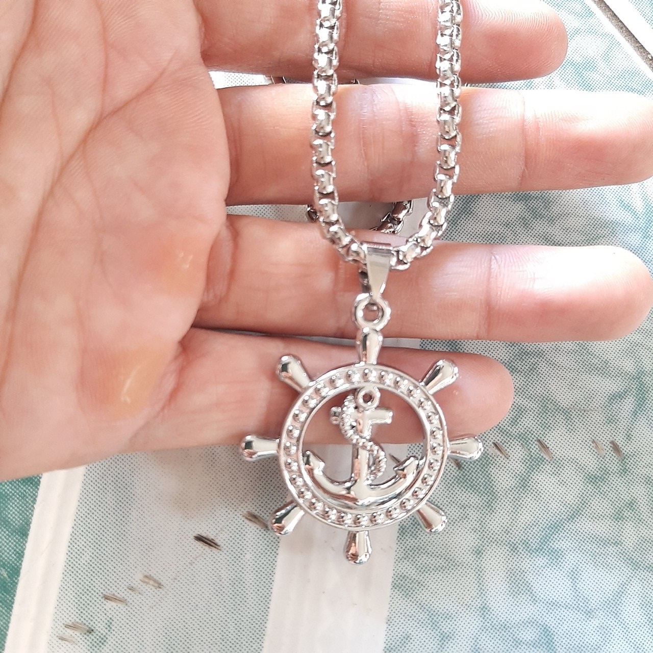 ✨Dây chuyền nam hình mỏ neo may mắn, mặt hợp kim không gỉ si mạ, dây titan cao cấp rộng 3-4mm, dài 50cm