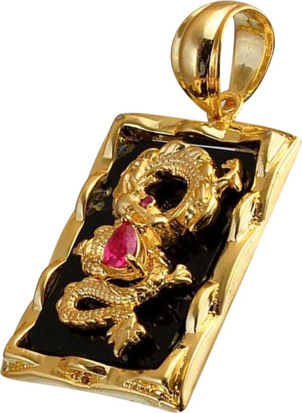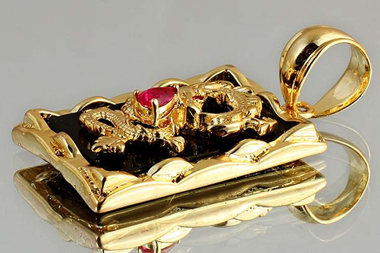 Mặt dây chuyền hình rồng vàng 18k, mặt đá ruby tự nhiên