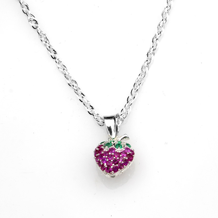 ✨Dây Chuyền Trẻ Em Bạc Hiểu Minh DTE050 Quả Dâu Tây