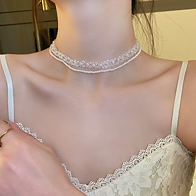 Thiết kế độc đáo mà tinh tế, mix hạt cườm và ngọc trai nhiều tầng, dáng ôm bó sát cổ, tôn lên vẻ đẹp kiêu kì chiếc cổ nõn nà của nàng. Vòng cổ hạt cườm trong suốt rất thích hợp mix các loại áo váy cổ rộng, phối áo đầm hai dây, váy áo cúp ngực, crop điểm nhấn thu hút mọi ánh nhìn.