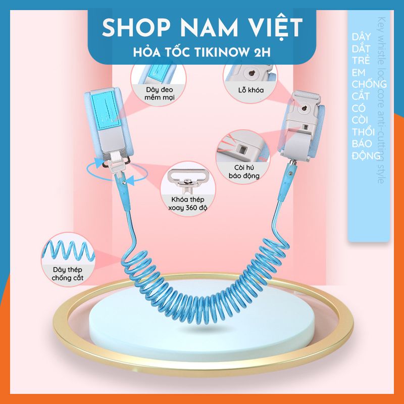 ️ Tính năng Dây dắt trẻ em giúp bé không bị đi lạc khi đi chơi ở chỗ đông người Dây dắt có khóa để bé không thể tự mở ra khi không có người lớn Phía tay bé có lỗ thổi còi để bé có thể báo động vị trí đứng Dây dắt được sơn phản quang (không phải dạ quang) để dễ dàng tìm thấy trong đêm Đầu dây xoay 360 độ không sợ bị rỗi Lõi dây là thép không rỉ chống cắt Dây dài 2,5 mét.