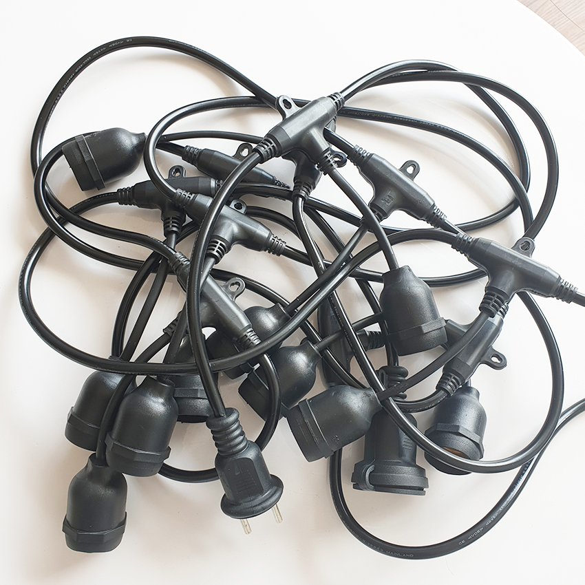 Dây chui E27 ngoài trời lý tưởng cho trang trí chiếu sáng không gian tiệc ngời trời, cafe vườn, trang trí quấn cây ngoài trời, quán ăn, lắp trong rạp lớn… tùy ý thích của quý khách ứng dụng nó.