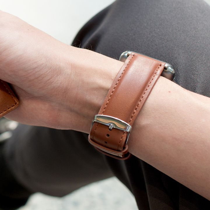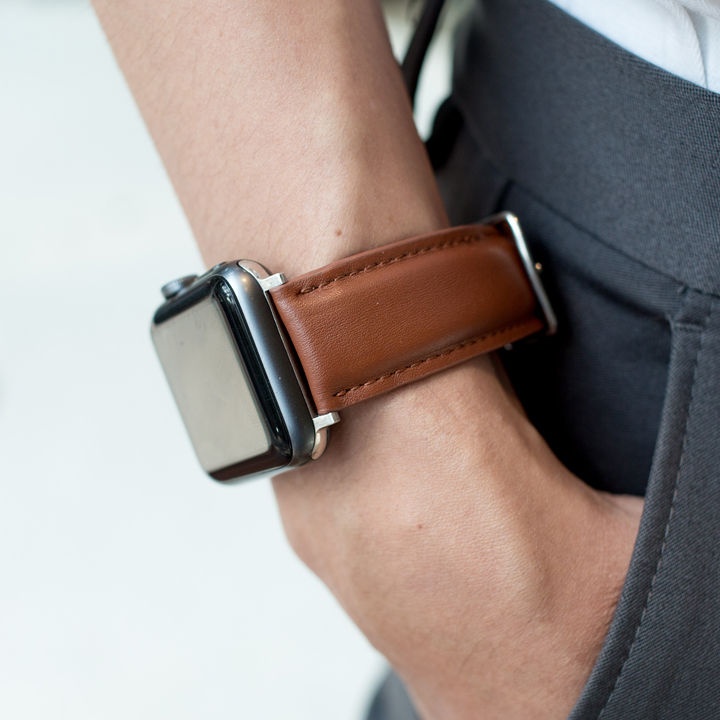 Dây da đã lắp sẵn bộ chốt (Adapter) và khóa (Buckle) bằng thép không gỉ 316L được sản xuất riêng cho Apple Watch.